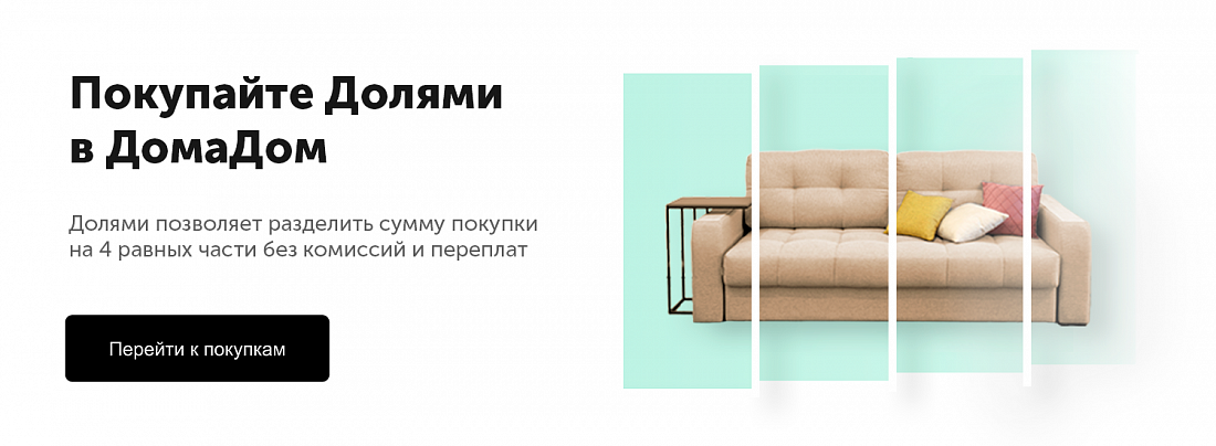 Сервис «Долями» помогает вам разделить сумму покупки на четыре равных платежа – без комиссии и дополнительных плат. Покупку получите сразу после оплаты первой части.