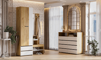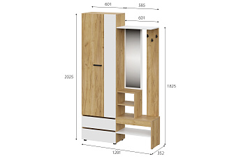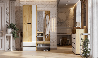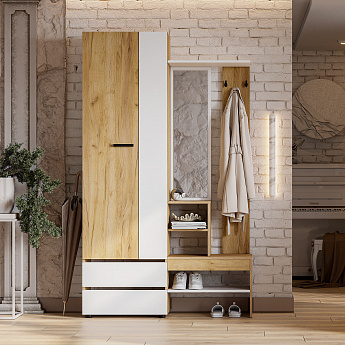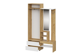 Вешалка с зеркалом Абрау (Дуб Золотой/Белый), FI