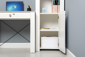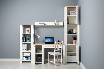 Стол Джастин письменный 12.154 (Белый PE шагрень/Дуб Белый exclusive OW D4430), Моби