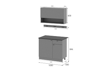 Кухонный гарнитур Энни (1,0м) (Черный/Графит серый), FI