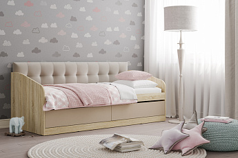 Кровать АКВАРЕЛЬ НМ 041.50 с мягкой спинкой (Дуб Сонома/Капучино/Велютто 16) МФ Сильва