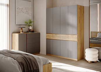 Шкаф 4-створчатый Бостон Лайт ШК-004 (Дуб Крафт золотой/Серый Шифер), Стиль