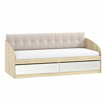 Кровать ОЛИВИЯ НМ 041.50-01 с мягкой спинкой (Дуб Сонома/Белое дерево/Велютто 16) МФ Сильва