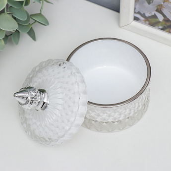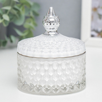 Шкатулка стекло "Ромбы и купол" белый с серебром/7373263