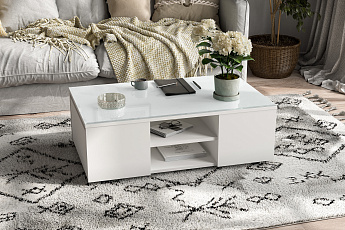 Стол журнальный со стеклом Герда (Одри) (Белый), FI
