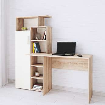Стол компьютерный Квартет-7 (Дуб Сонома/Белый), ТЭКС