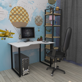 Лофт DQ Стол компьютерный SITI (Белый Шагрень/м/к черный), ЭКВИП