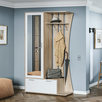 Тумба с вешалкой САФАРИ ТМ-003 (Дуб Крафт белый/Белый), Стиль