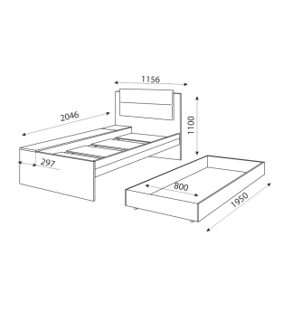 Дуглас М14 Кровать с ящиком (800х2000) (Дуб Золото/Графит Шагрень), Риннэр