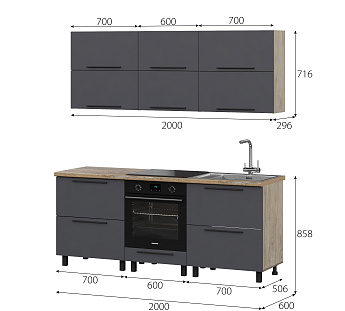 Кухонный гарнитур Этна Софт Графит, FI, Компоновка 2000 2