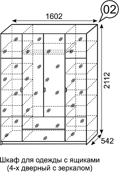 Шкаф для одежды с ящик 4-х дв Palermo 02 (Белый/Черный), Иж