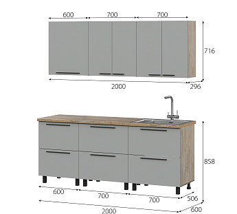 Кухонный гарнитур Этна Софт Грей, FI, Компоновка 2000 3