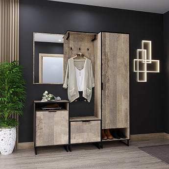 Прихожая Фолк (Дуб Гранж песочный) Компоновка 1